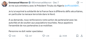 Sur le plan diplomatique, le rôle de coordinateur de Paris dans la sous-région n’a pas tardé à se manifester. Un appel téléphonique entre le président français Emmanuel Macron et son homologues nigérian Bola Tinubu, survenu en matinée, a permis aux observateurs d’interpréter l’événement comme un feu vert implicite à l’intervention.